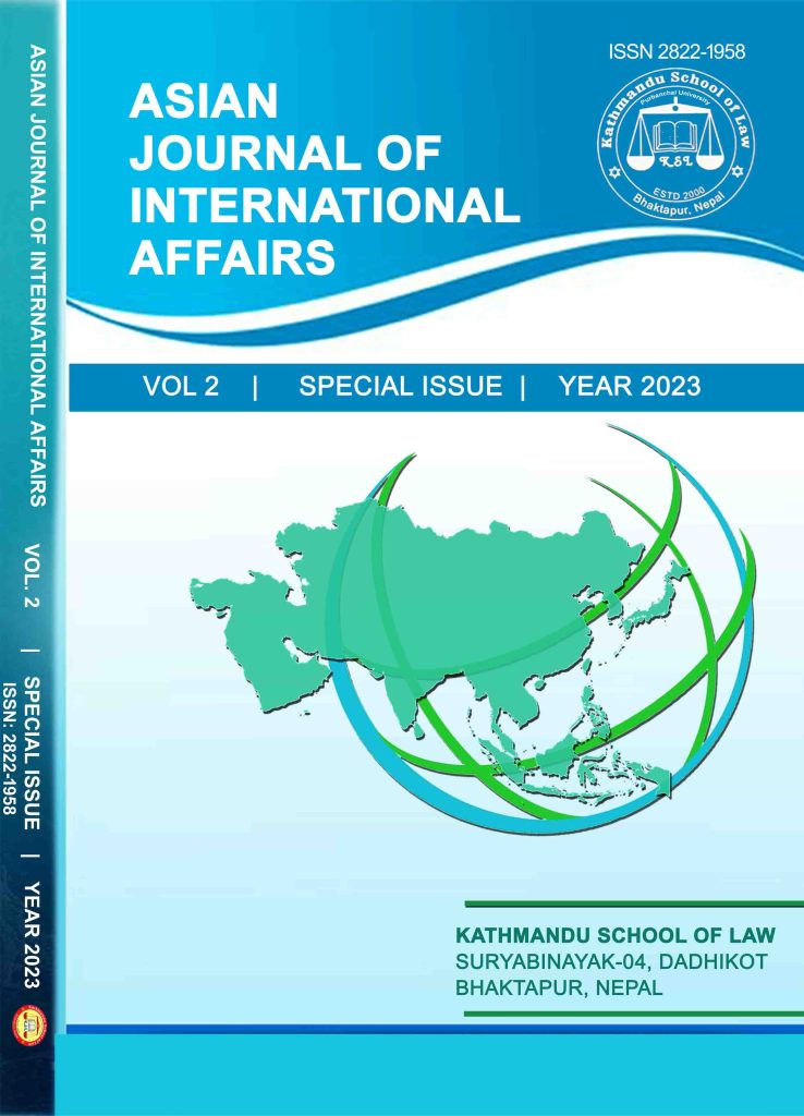 Asian Journal of International Affairs (AJIA) is the double-blinded peer-reviewed journal published by Kathmandu School of Law. It publishes creative and innovative article on International Affairs where the core of the research is to focus on the Oriental Philosophy. It aims to bridge the gap between various Nations in the Global South and provide an academic platform for intellectuals to express their intellect.